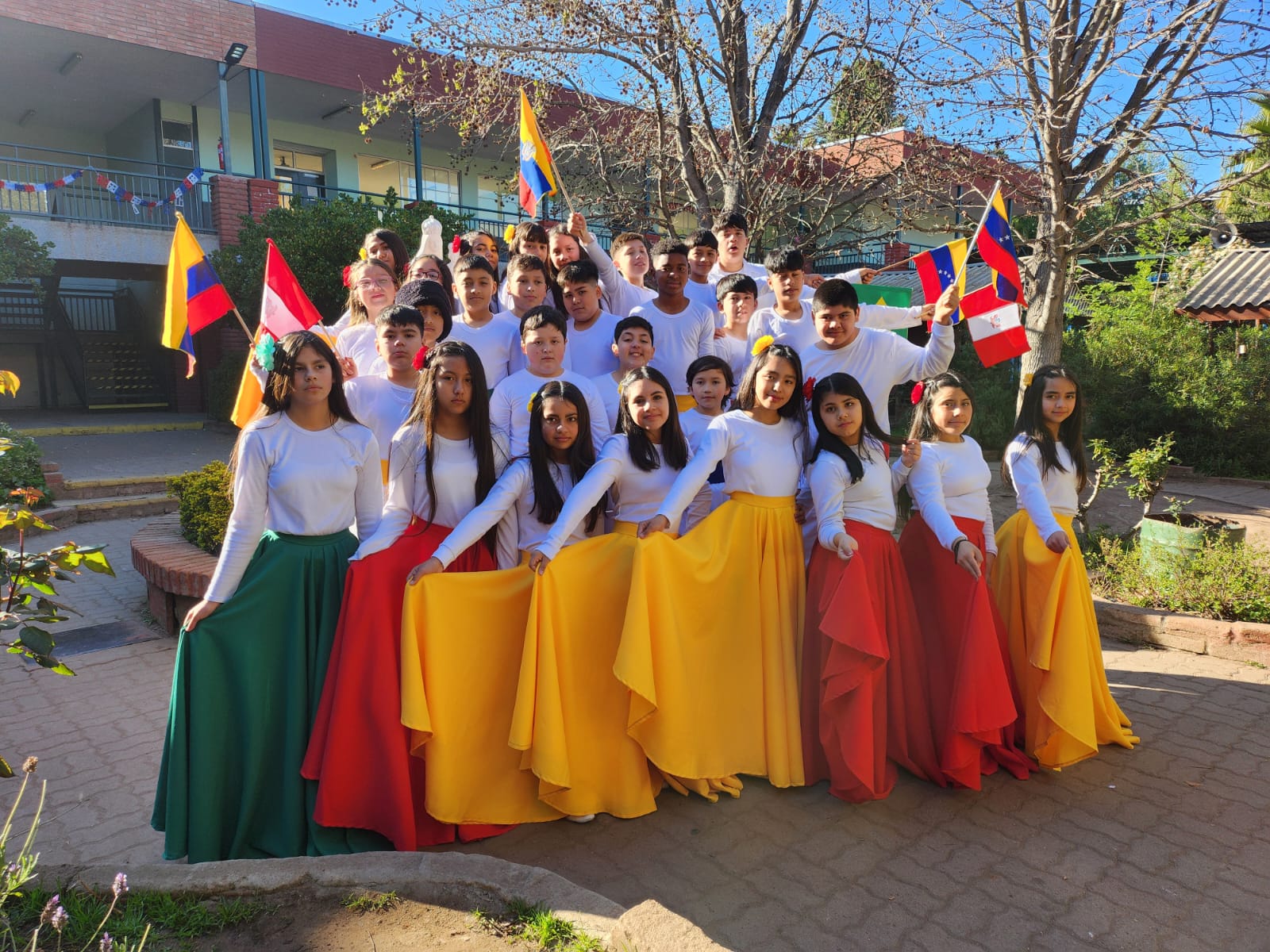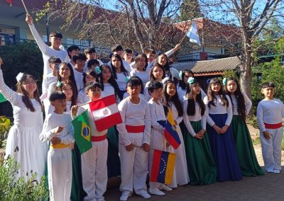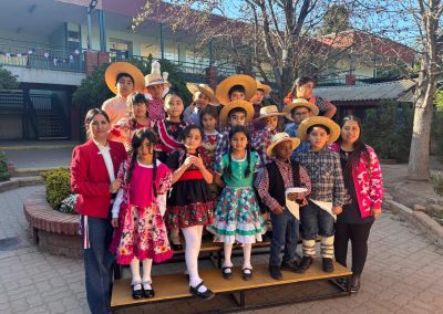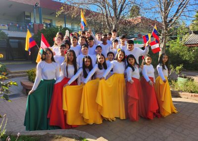 El pasado viernes 12 de septiembre, nuestro colegio vivió una jornada llena de cultura, música y baile en la Muestra Folclórica, titulada Carnaval de Tradiciones 2025, donde estudiantes de distintos niveles nos presentaron cuadros artísticos que resaltaron nuestras tradiciones y diversidad cultural.La apertura de este evento comenzó con un Pie de Cueca para posteriormente dar paso a los números que realizaba cada nivel que participó. Las presentaciones realizadas recorren la diversidad cultural de nuestro país desde el Norte con bailes como el caporal,la tirana o los trotes,avanzando por nuestra zona centro con pies de cueca, e incluyendo la rica cultura insular de nuestra isla de Rapa Nui,para llegar a la zona sur con bailes como el costillar y además ,contamos con la presentación folclorica de otros paises latinoamericanos.