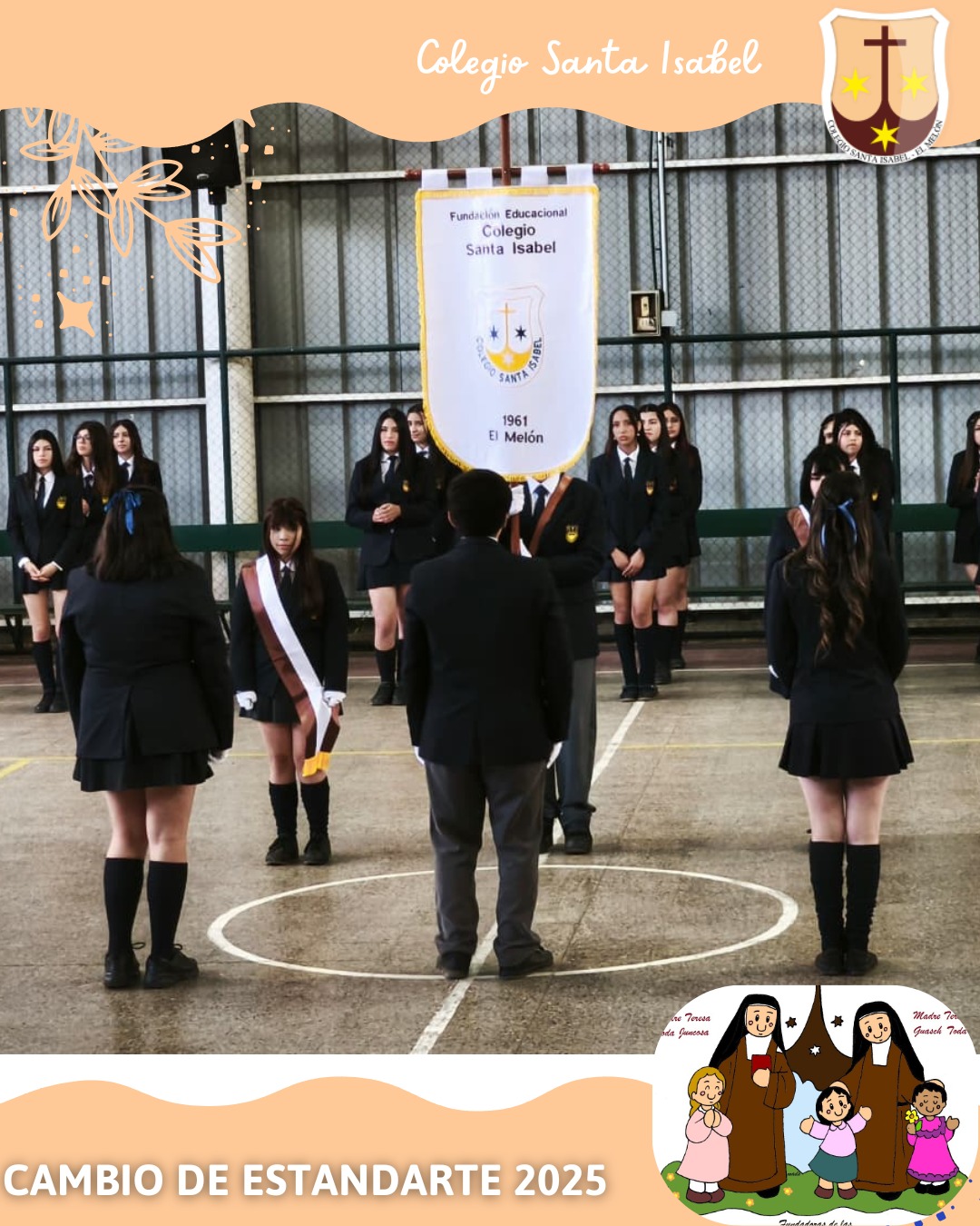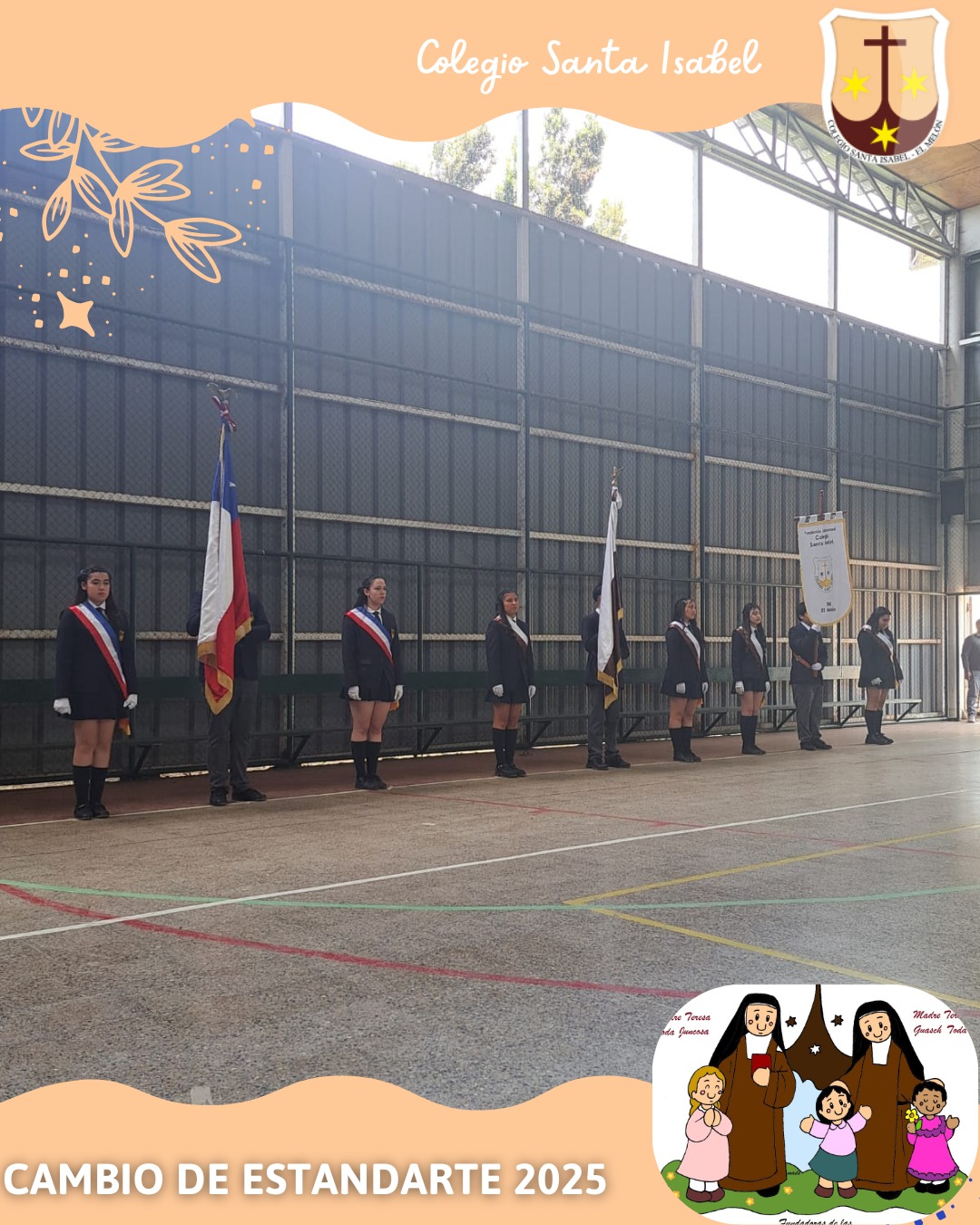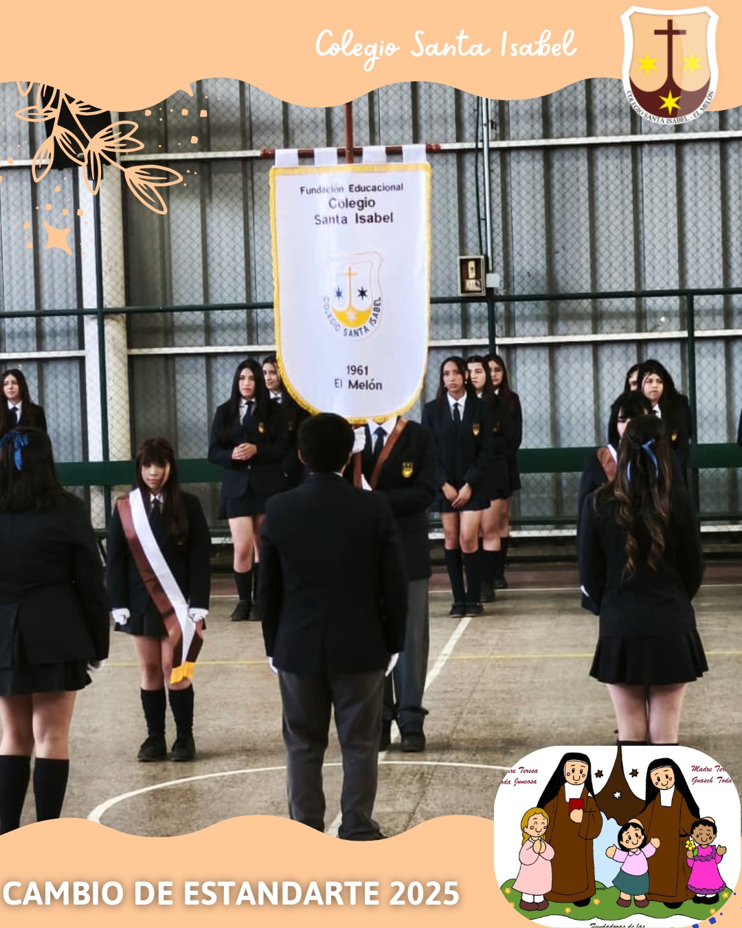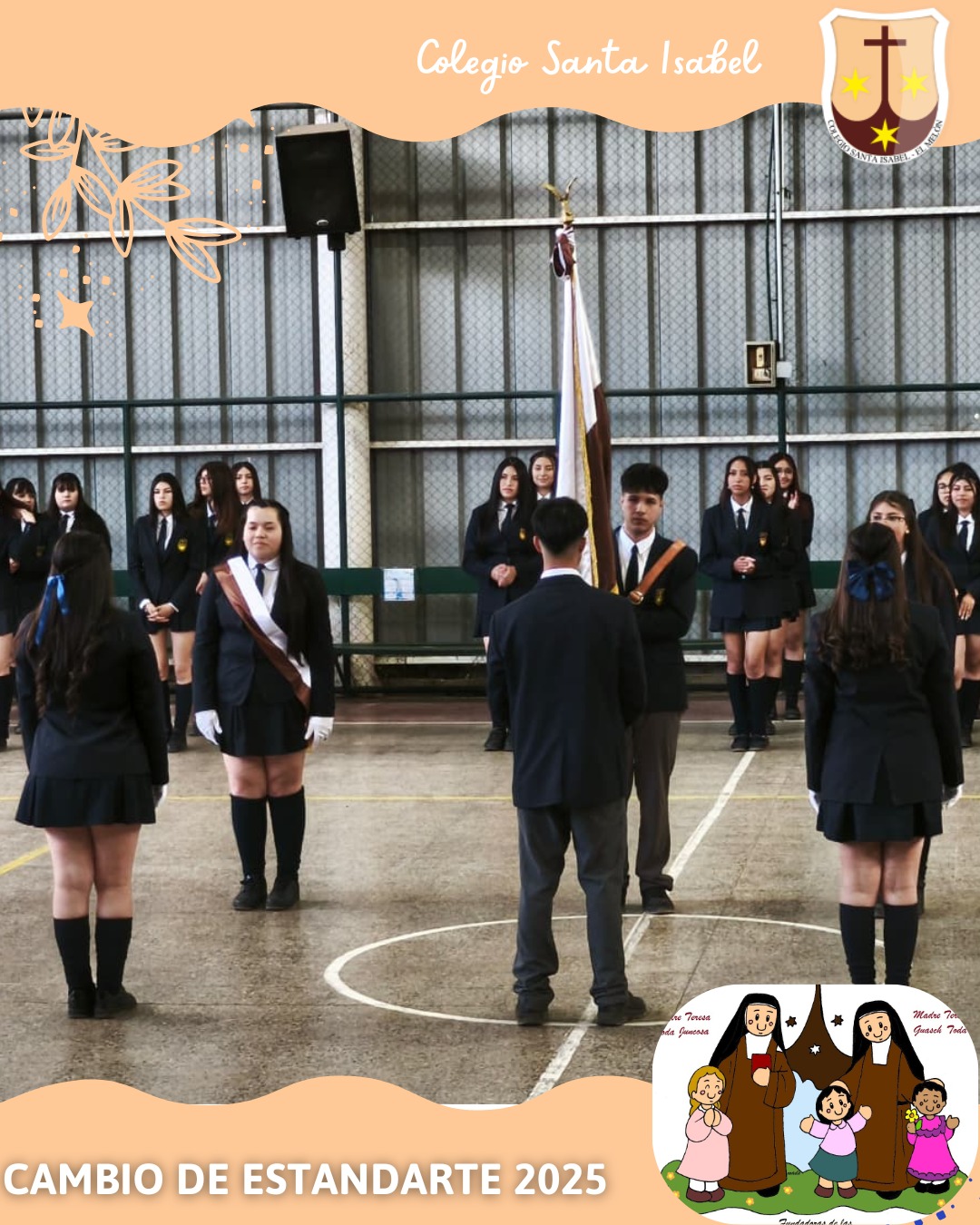 El jueves 6 de noviembre de 2025, el Colegio Santa Isabel realizó la tradicional Ceremonia de Cambio de Estandartes, donde los estudiantes de Cuarto Medio traspasaron este importante símbolo a sus compañeros de Tercer Medio, quienes asumirán el honor durante el año 2026.