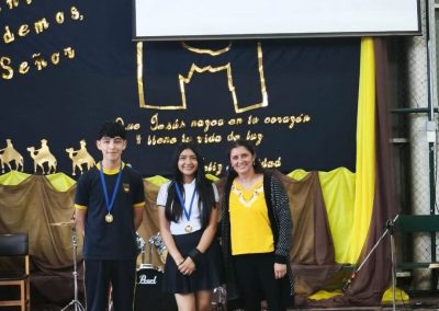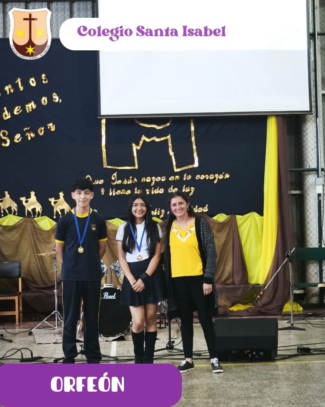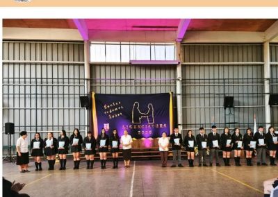 Finalmente, se reconoció a Javiera Alejandra Martínez López y Nyha Amaral Barco Fernández (4°A) por su destacada participación y compromiso en el Orfeón del Colegio Santa Isabel.