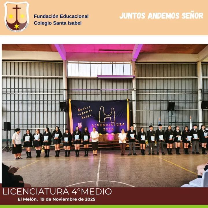 Con profunda gratitud y emoción, la Generación 2025 de los Cuartos Años Medios del Colegio Santa Isabel se despidió de su etapa escolar en la tradicional Última Eucaristía. Celebrada bajo el cálido amparo y la guía espiritual de las Hermanas Carmelitas Teresas de San José, esta misa marcó un hito imborrable en la vida de los estudiantes. Fue un momento de acción de gracias por los años vividos, la educación recibida y la formación en la fe y los valores carmelitanos. Cada joven lleva consigo el legado de Santa Teresa de Jesús y la misión de la Congregación, y no solo conocimientos quedan con ellos, sino también el espíritu de sencillez, servicio y amor a Dios y al prójimo que define a la comunidad. Con la bendición final, la Generación 2025 se preparó para cruzar el umbral hacia nuevos desafíos, sabiendo que las enseñanzas y el cariño del Colegio Santa Isabel y de sus Hermanas serán la luz que guíe sus caminos